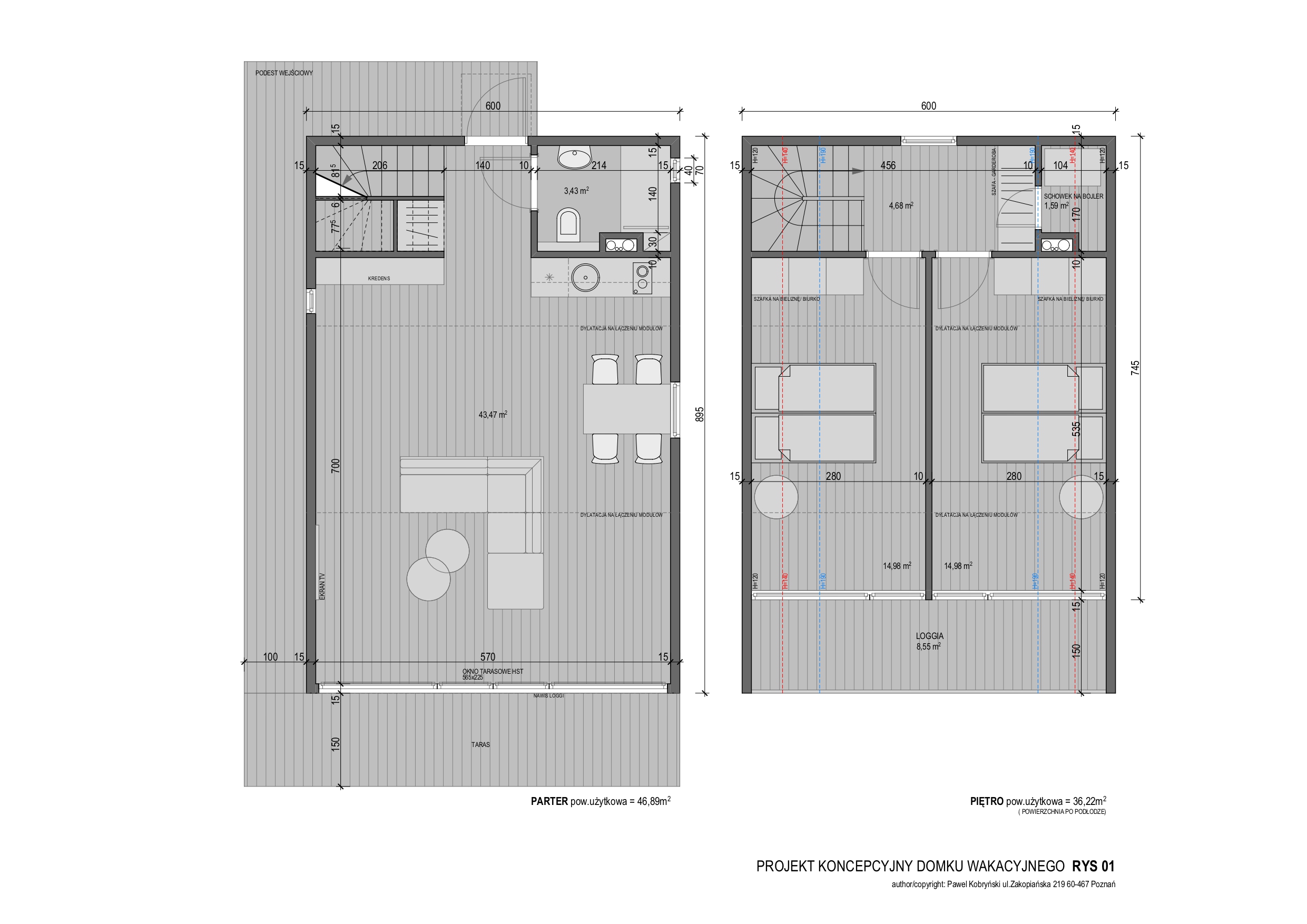 - Powierzchnia użytkowa parteru: 46,89 m²